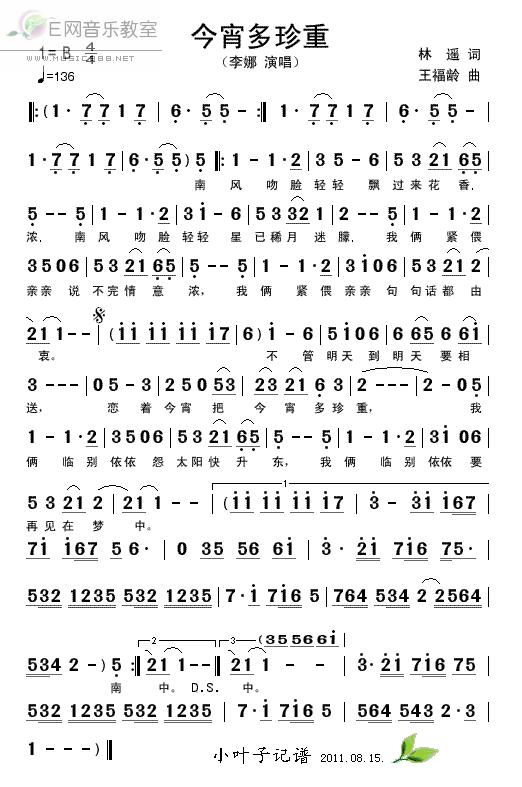 今宵多珍重-李娜(简谱)