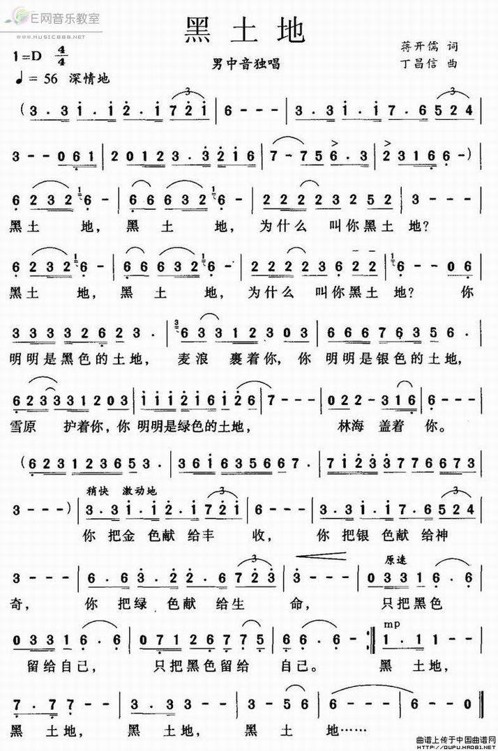 >> 黑土地-蒋开儒词 丁昌信曲(简谱)