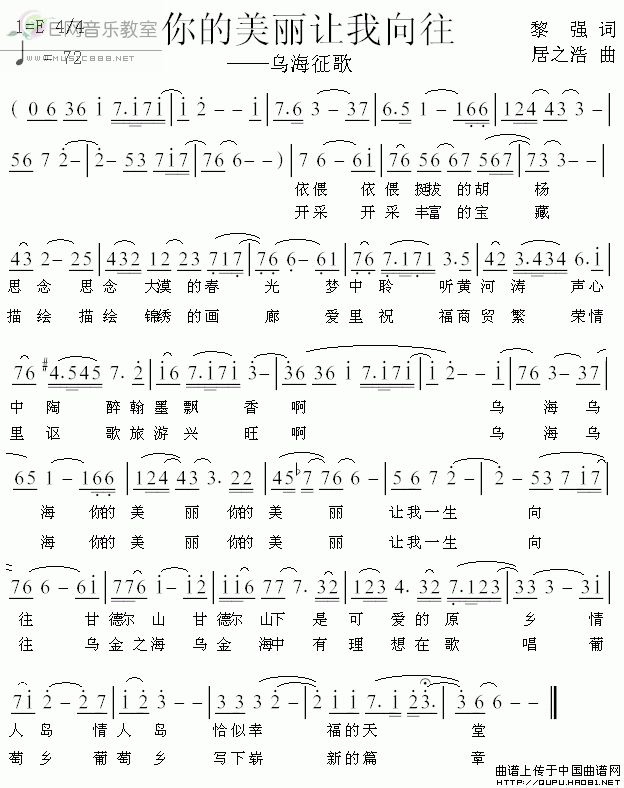 你的美丽让我向往-黎强词 居之浩曲(简谱)