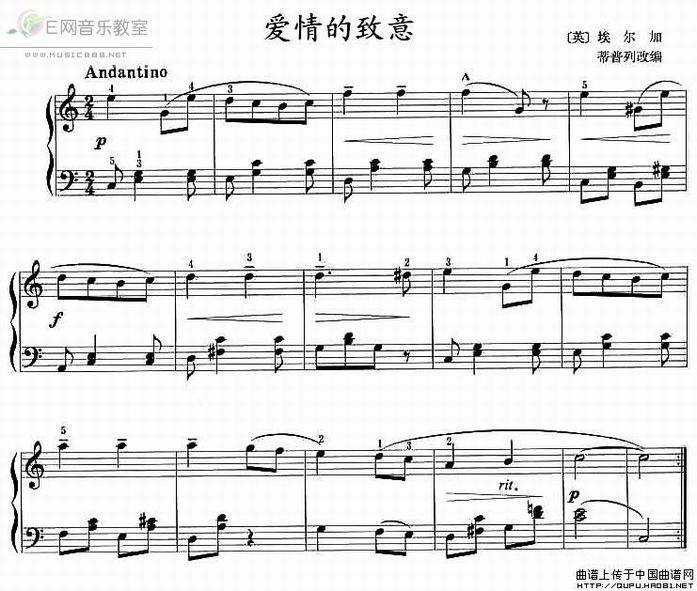 >> 爱情的致意-钢琴谱(五线谱)