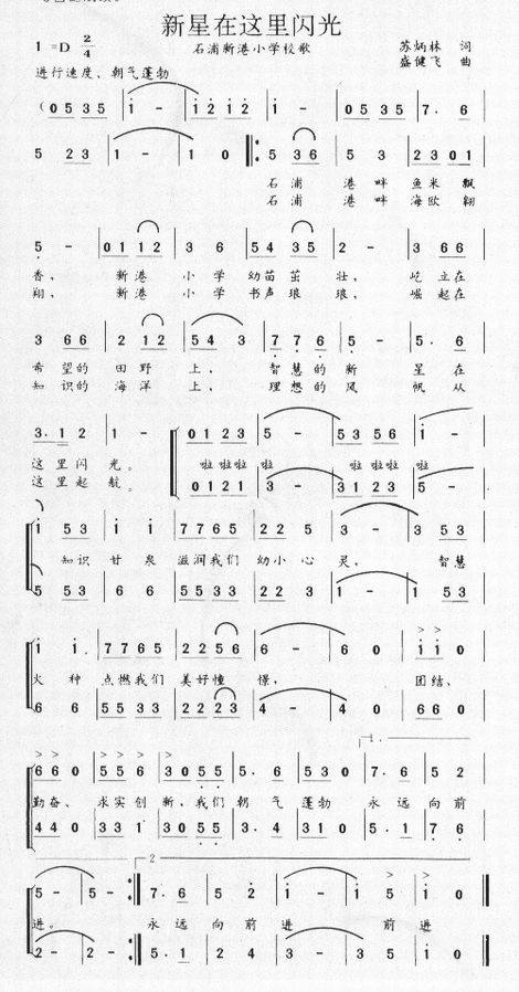>> 新星在这里闪光-石浦新港小学校歌(简谱)