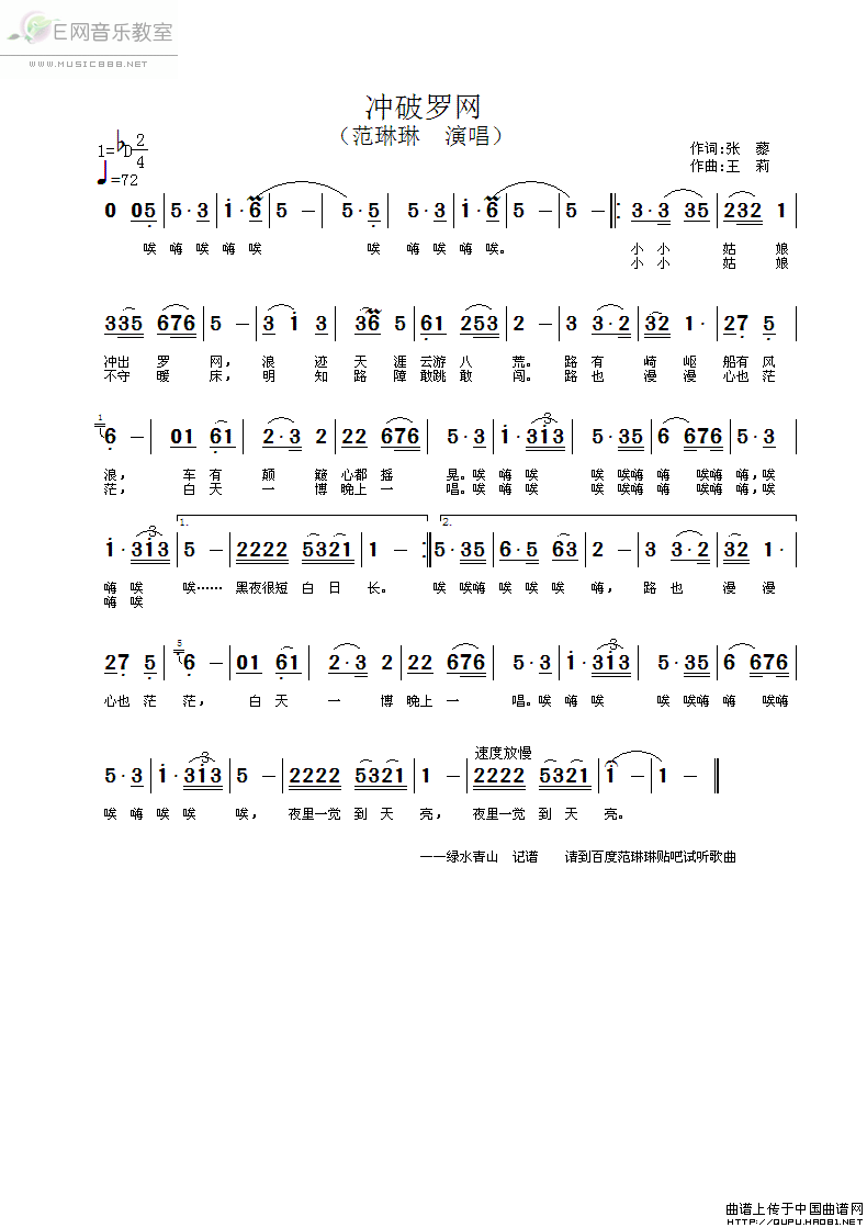 冲破罗网-范琳琳(简谱)