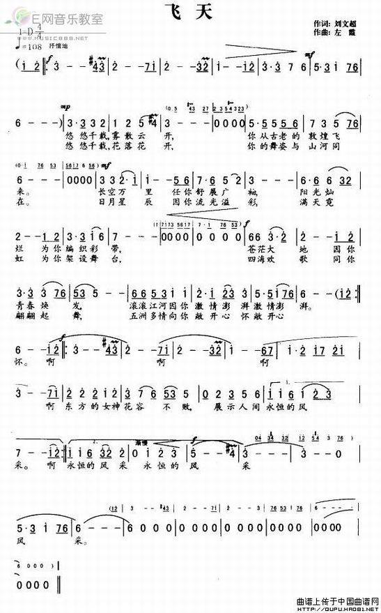 飞天-刘文超词 左霞曲(简谱)