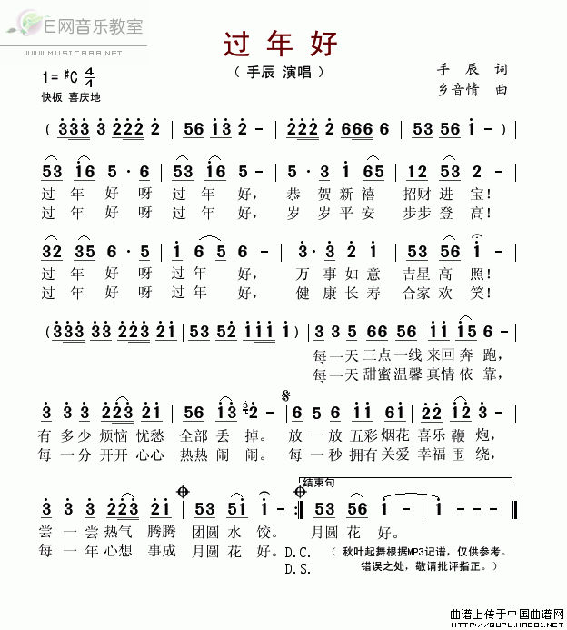 过年好-手辰 歌词: