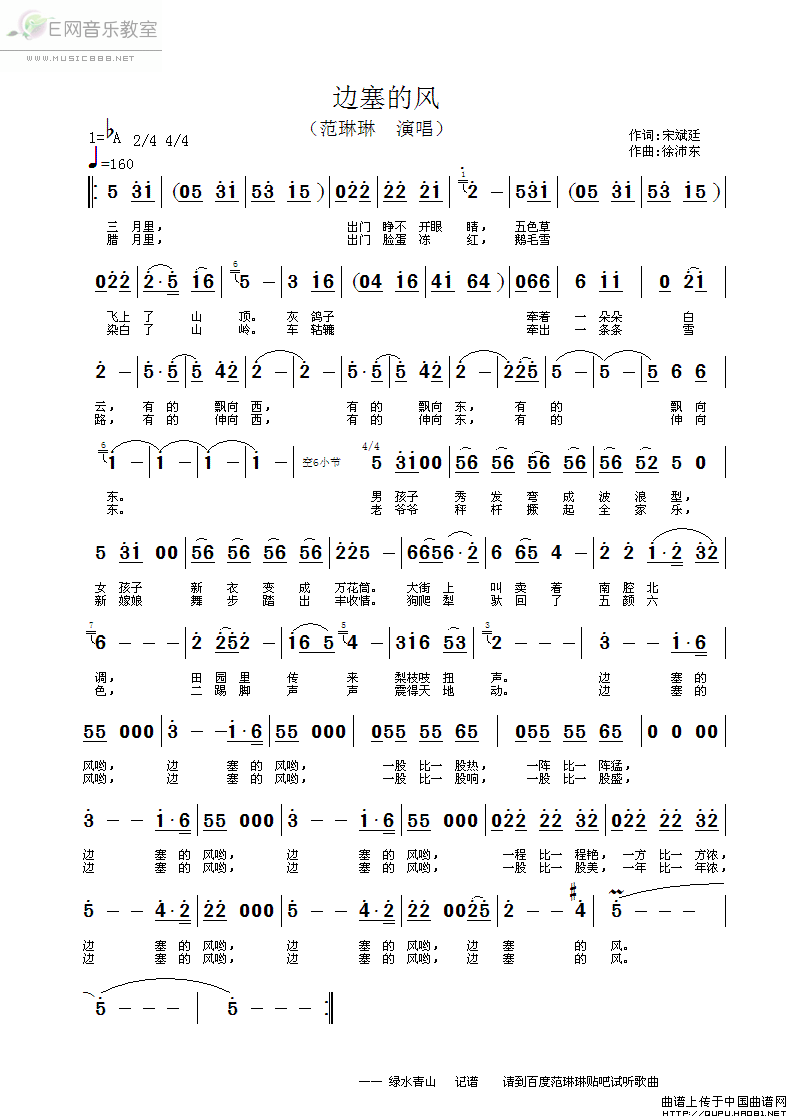 >> 边塞风-范琳琳(简谱)