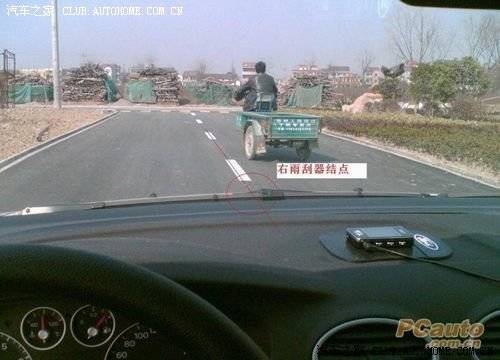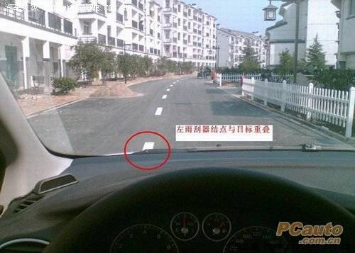 当右雨刮器结点和路边重合时,方向稍向左拉,就可以达到离路边10厘米靠边停车的效果