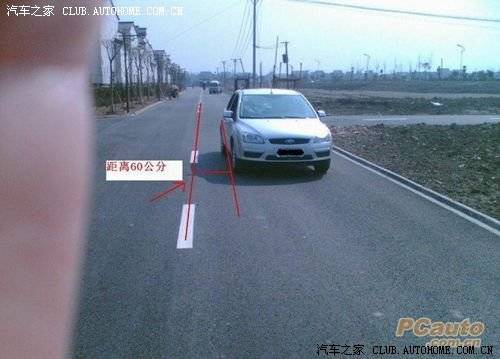 当我们的视线通过棉板和A柱的交角和中线重合时,车身正好离中线是60公分。