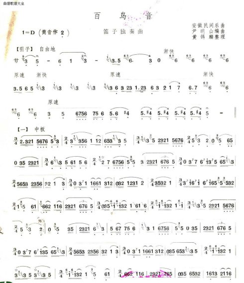 百鸟音 歌谱 曲谱 乐谱