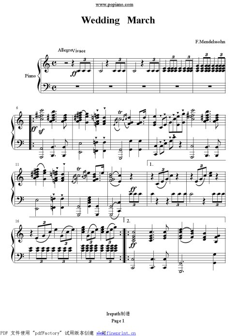 婚礼进行曲 歌谱 曲谱 乐谱