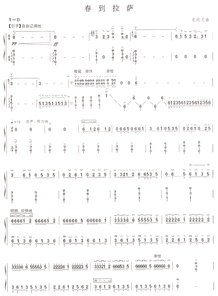 春到拉萨 歌谱 曲谱 乐谱