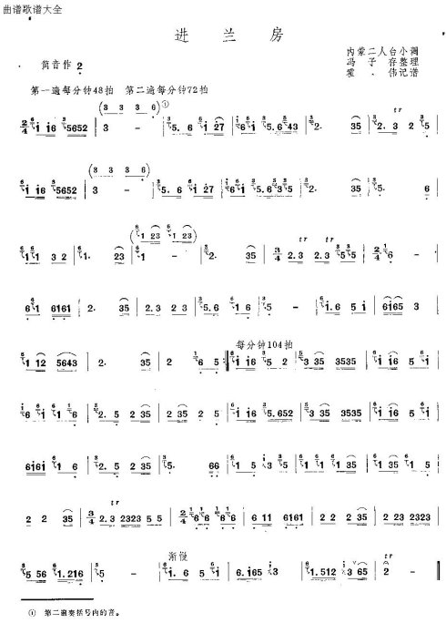 进兰房 歌谱 曲谱 乐谱