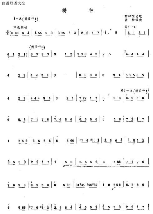 耕种 歌谱 曲谱 乐谱