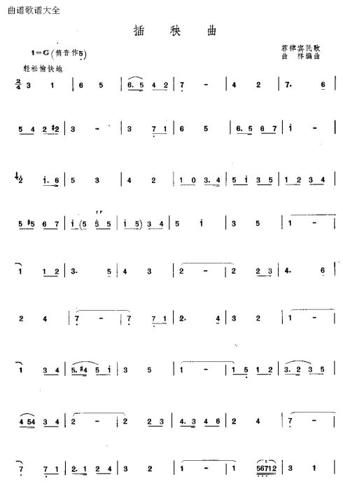 唱只山歌给党听 歌谱 曲谱 乐谱