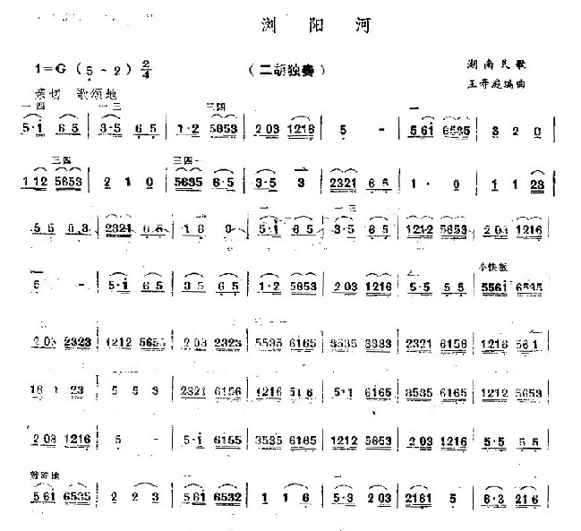 浏阳河 歌谱 曲谱 乐谱