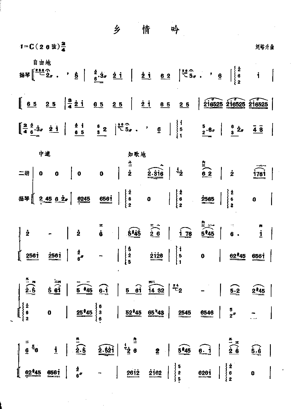 乡情吟 歌谱 曲谱 乐谱