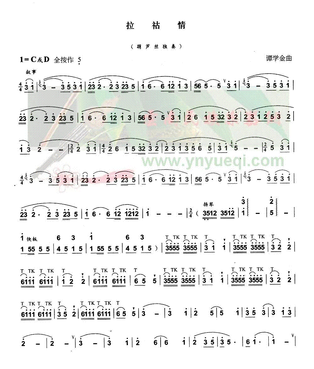 拉祜葫芦笙舞 歌谱 曲谱 乐谱