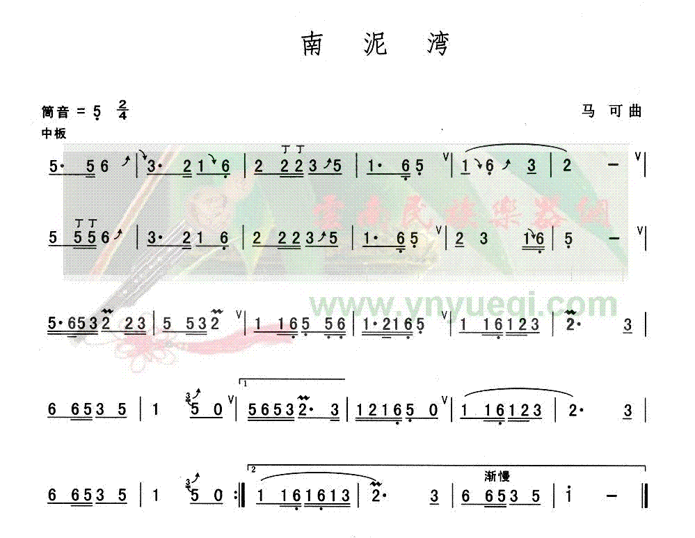 娜鲁湾情歌 歌谱 曲谱 乐谱