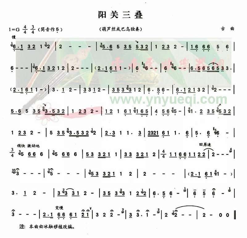 阳关三叠 歌谱 曲谱 乐谱