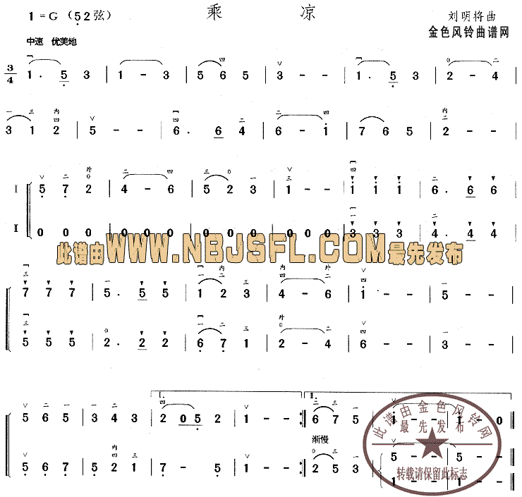 乘凉 歌谱 曲谱 乐谱