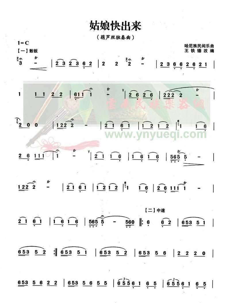 姑娘快出来 歌谱 曲谱 乐谱