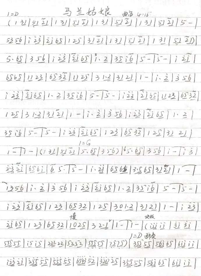 马兰姑娘 歌谱 曲谱 乐谱