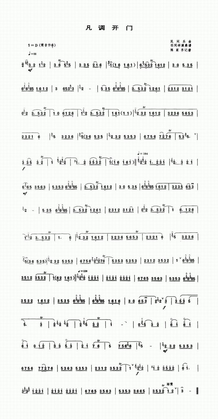 凡调开门 歌谱 曲谱 乐谱