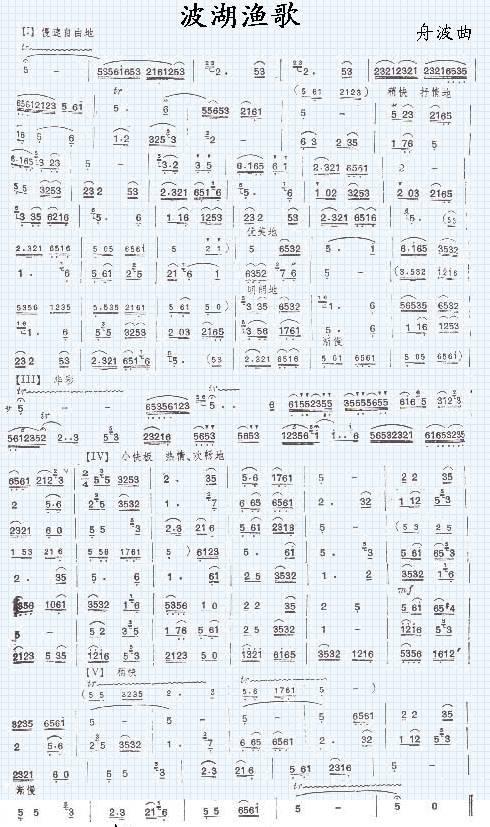 波湖渔歌 歌谱 曲谱 乐谱