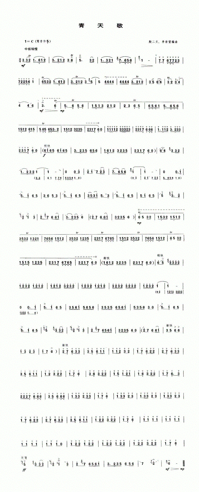青天歌 歌谱 曲谱 乐谱