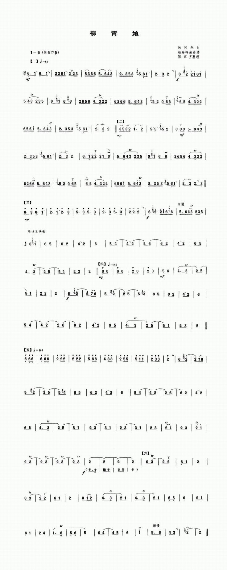 柳青娘 歌谱 曲谱 乐谱