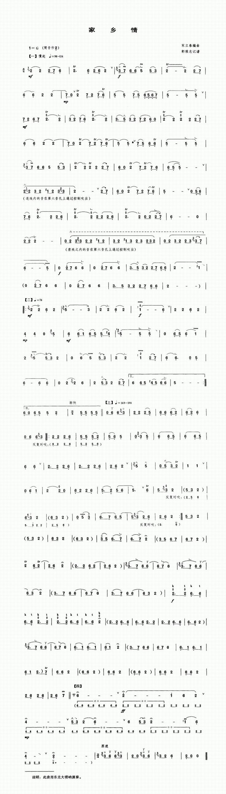 家乡情 歌谱 曲谱 乐谱