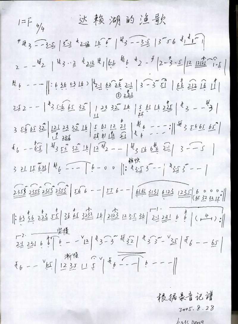 达赖湖的渔歌 歌谱 曲谱 乐谱