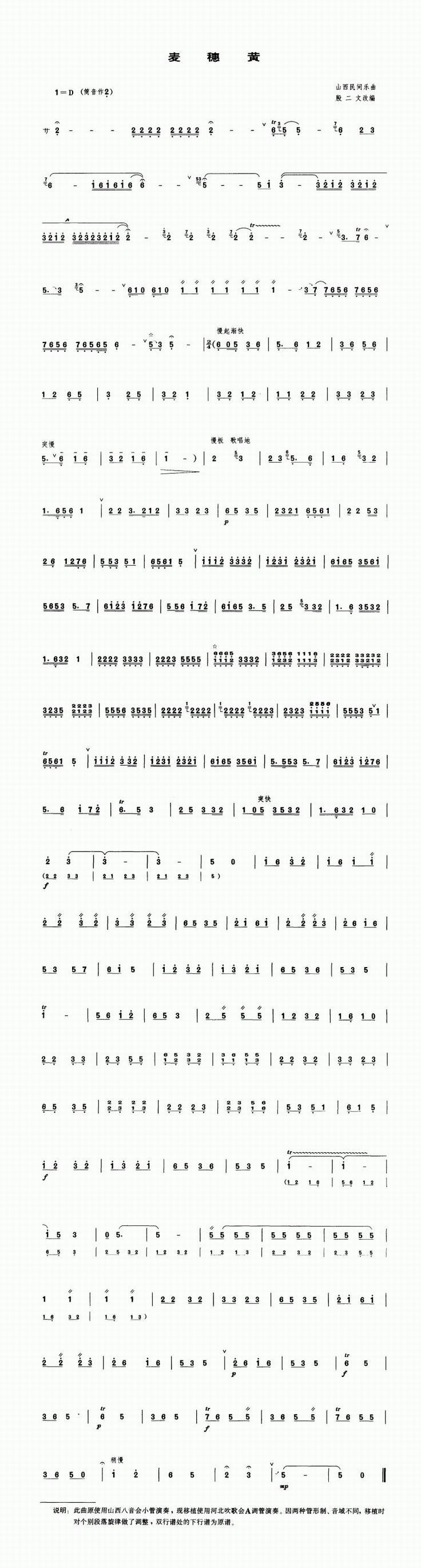 麦穗黄 歌谱 曲谱 乐谱