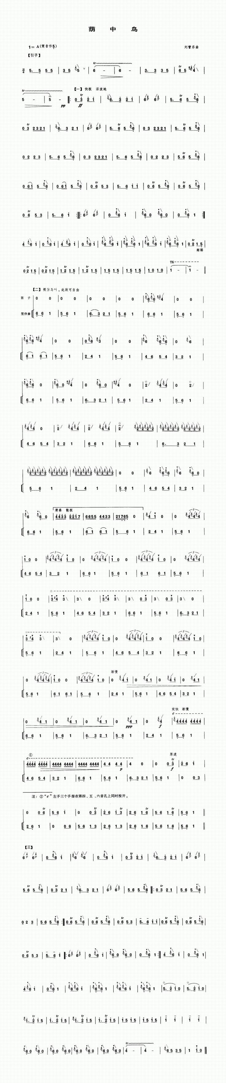 荫中鸟 歌谱 曲谱 乐谱