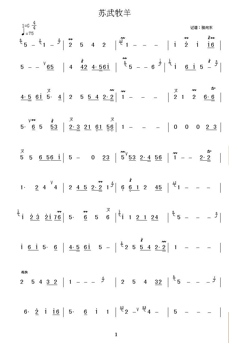 苏武归旌 歌谱 曲谱 乐谱