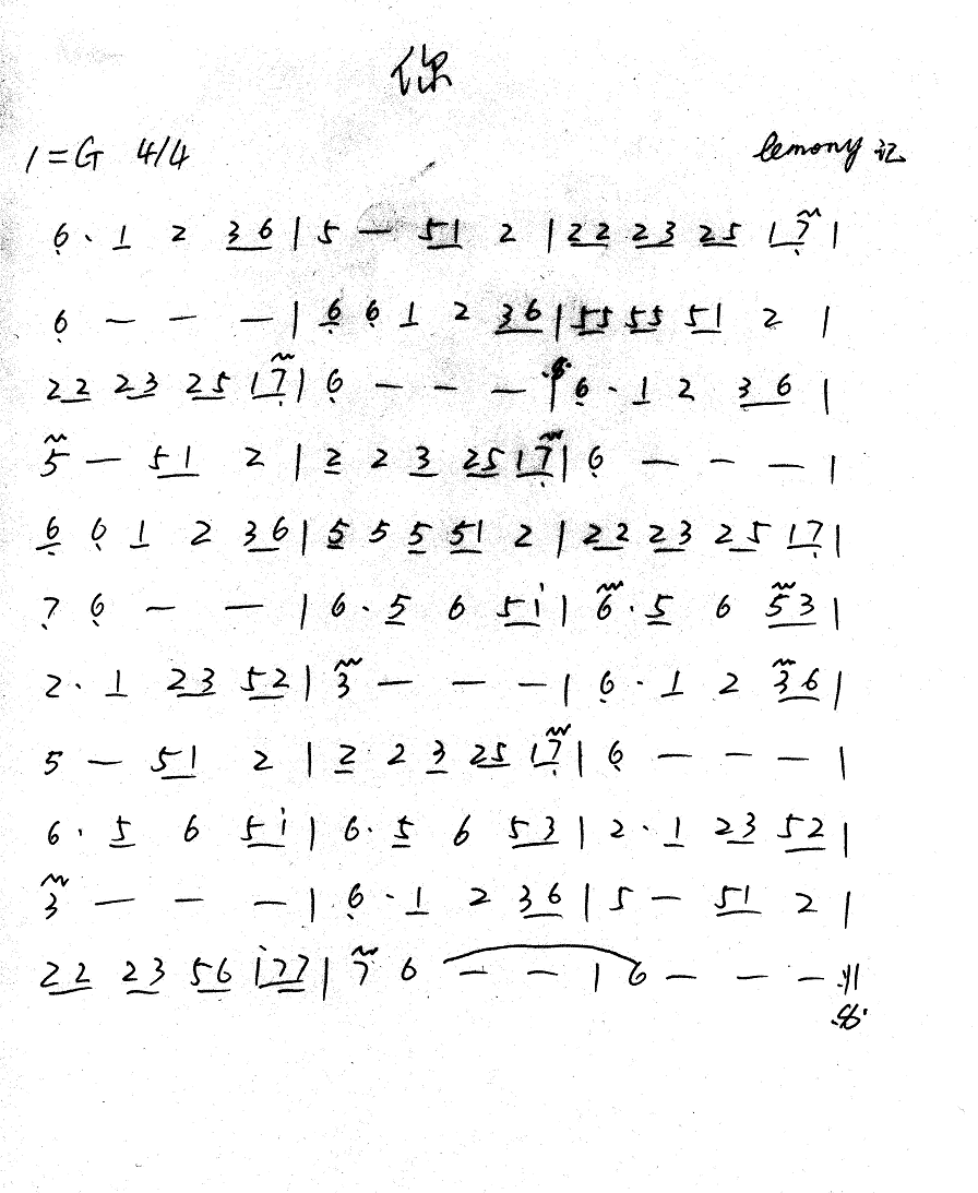 你 歌谱 曲谱 乐谱