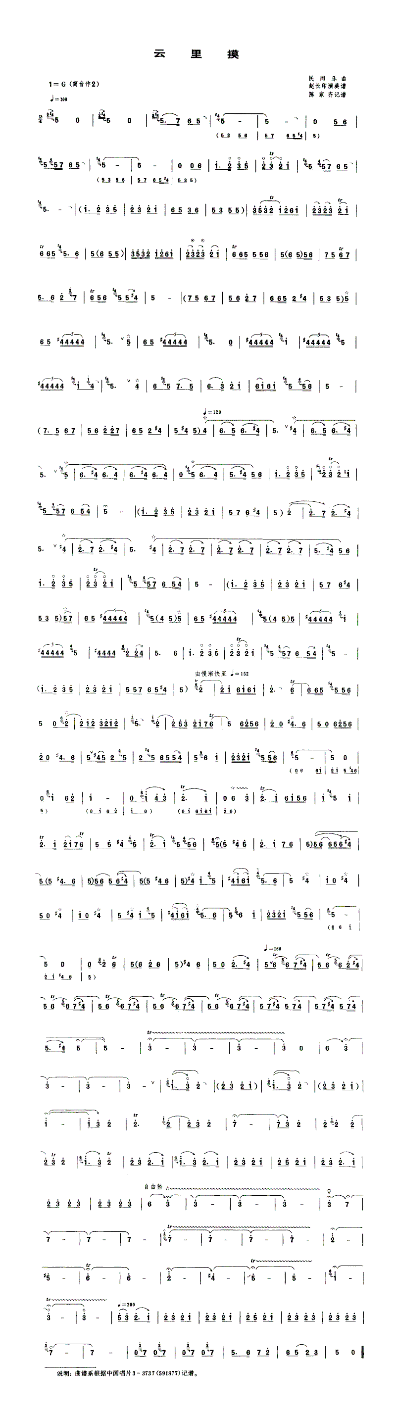 云里摸 歌谱 曲谱 乐谱