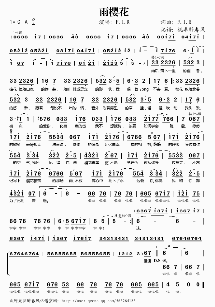 雨樱花 简谱 曲谱 歌谱