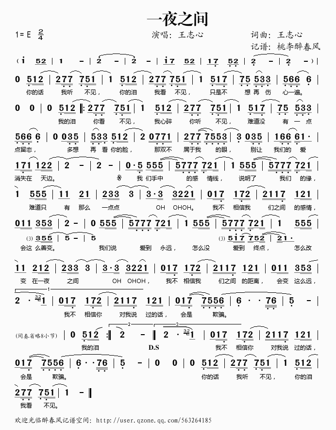 Ò»Ò¹Ö®¼ä ¼òÆ× ÇúÆ× ¸èÆ×