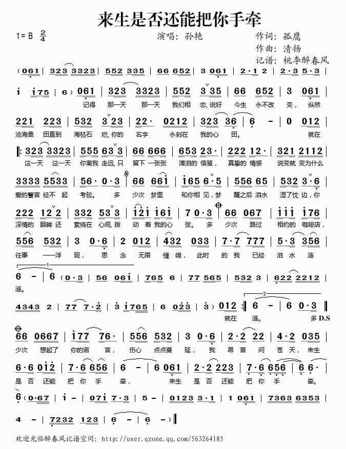 来生是否还能把你手牵 简谱 曲谱 歌谱