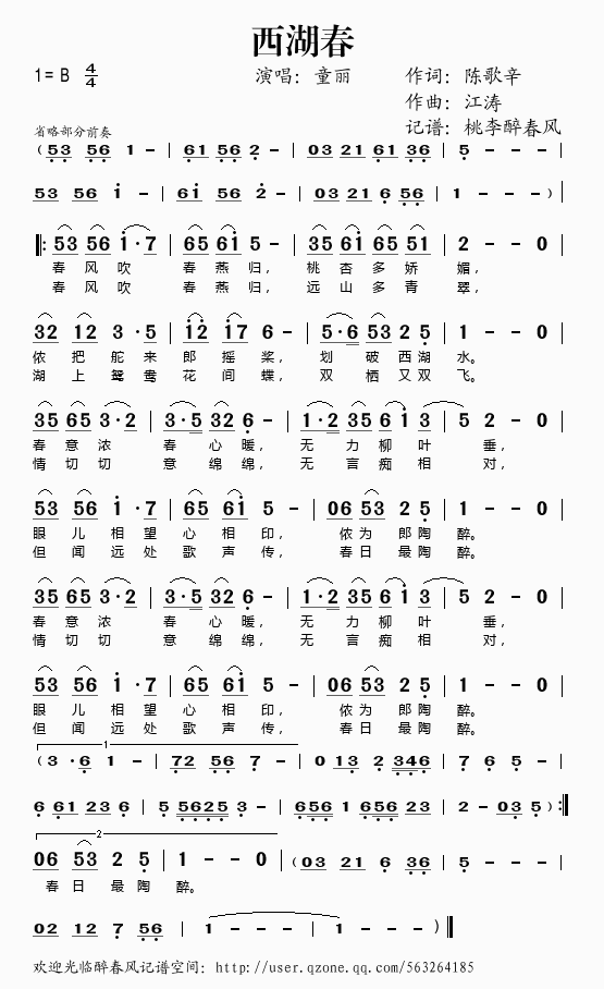 西湖春 简谱 曲谱