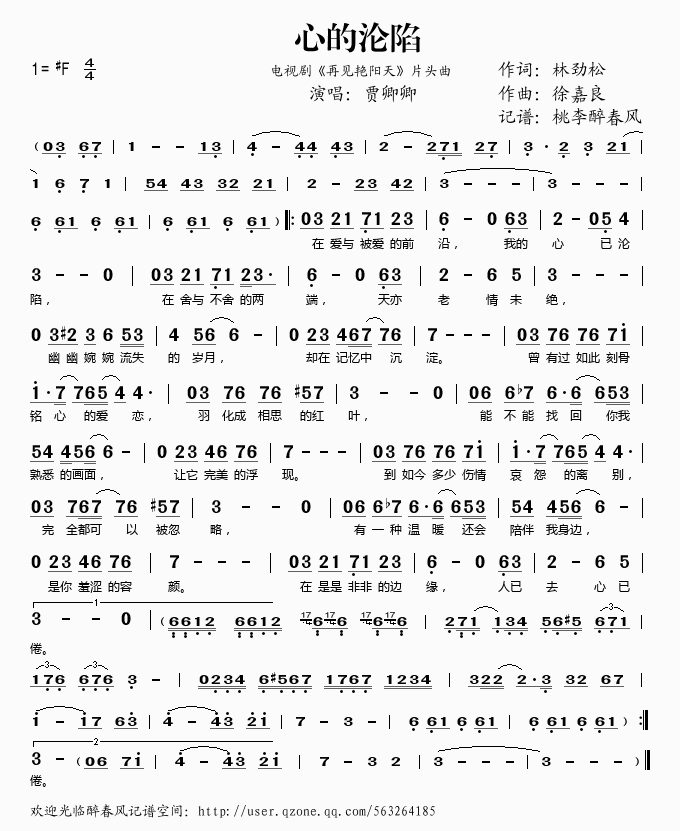 心的沦陷 简谱 曲谱 歌谱