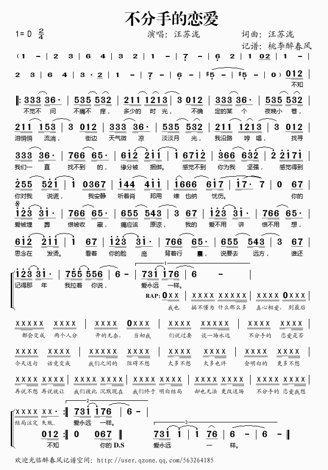 不分手的恋爱 简谱 曲谱 歌谱