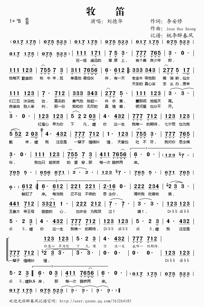 牧笛 简谱 曲谱 歌谱