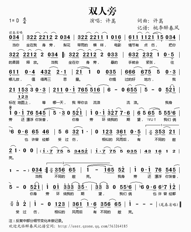 双人旁 简谱 曲谱 歌谱