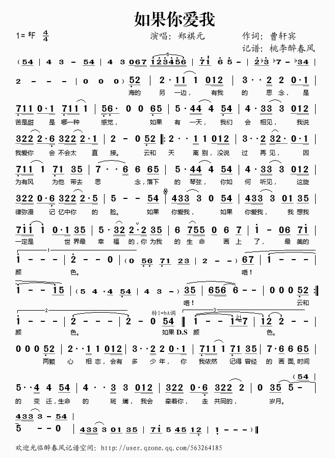 如果你爱我 简谱 曲谱 歌谱