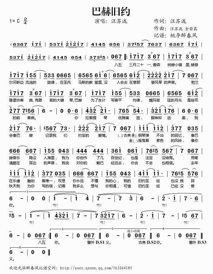 巴赫旧约 简谱 曲谱 歌谱