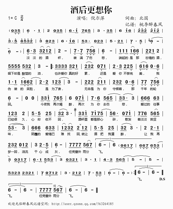 酒后更想你 简谱 曲谱 歌谱