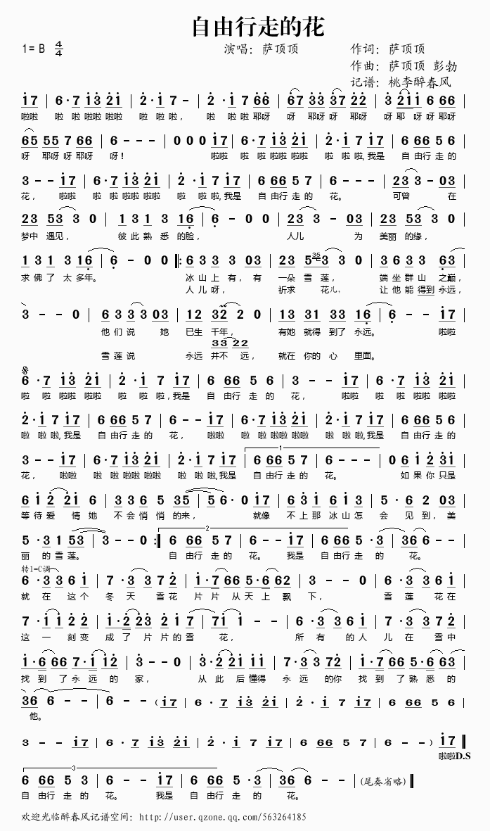 自由行走的花 简谱 曲谱 歌谱