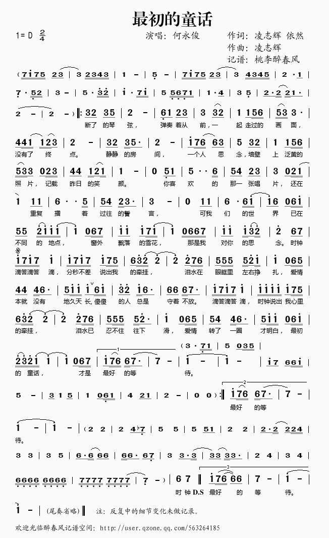 最初的童话 简谱 曲谱 歌谱