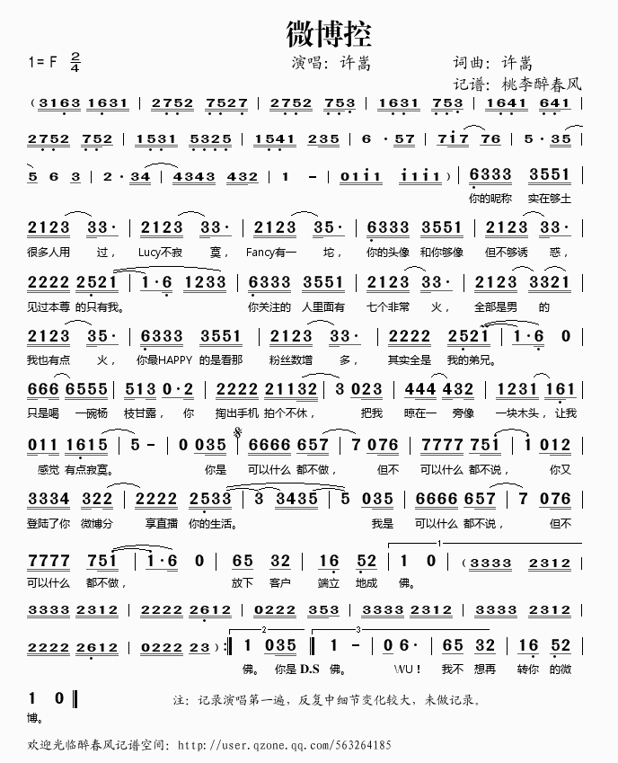 微博控 简谱 曲谱 歌谱